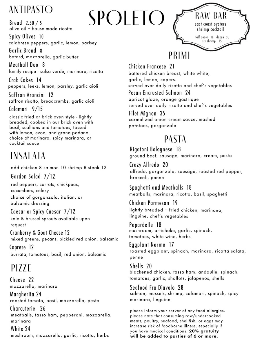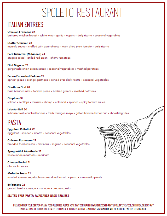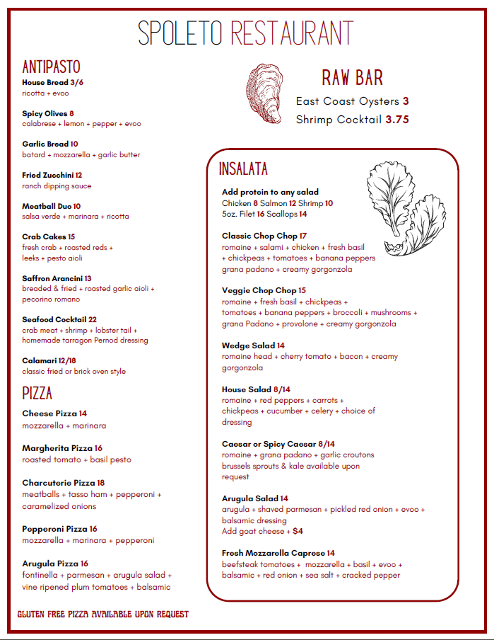 Welcome to Spoleto, a hidden gem nestled in the heart of Northampton, MA, where the vibrant flavors of authentic Italian cuisine come alive! Located at 1 Bridge St, this charming restaurant offers a delightful culinary journey that you won’t want to miss. Whether you're a local or just passing through, you'll find yourself enchanted by the warm ambiance and the tantalizing aromas wafting from the kitchen.
